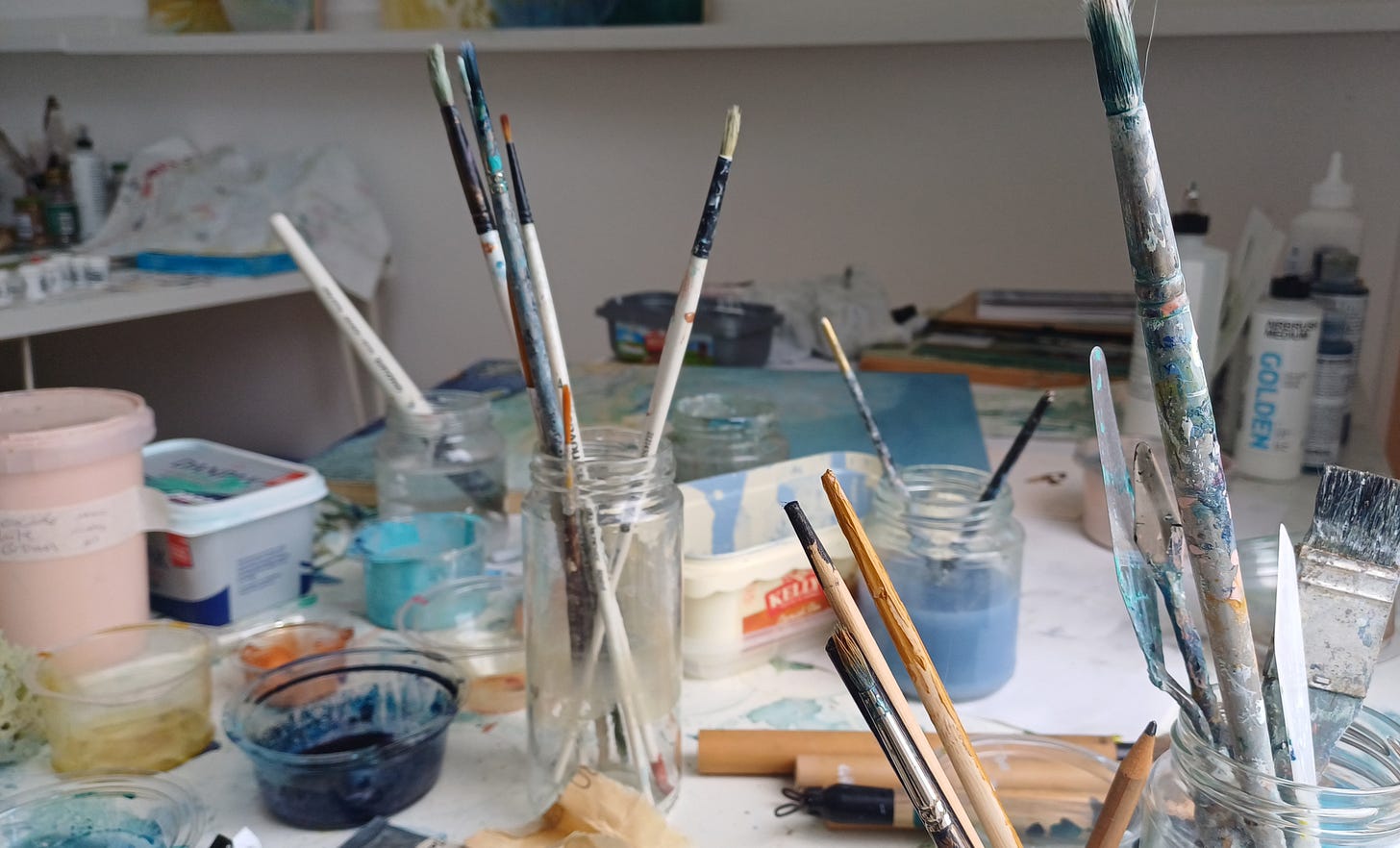 Almost like clockwork, after around 90 minutes I feel the energy and sense of forward momentum dropping, and my attention starts wandering. Sometimes I know 90 minutes must have passed because I find myself fiddling about on my phone, taking photos of my feet amongst the painting detritus on the floor, and then posting them to Instagram stories. If I’ve opened Instagram, it’s definitely been an hour and a half.